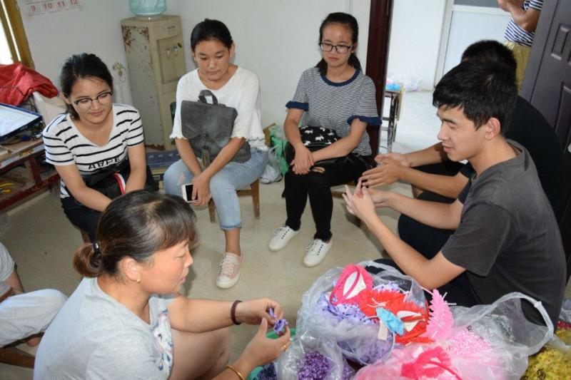 下午,全体成员来到了睢宁县李集镇,先听取了李集镇党委副书记杨方介绍了李集镇的基本情况,之后大家前往饰品加工厂户家中进行走访。通过走访,大家了解到目前李集的饰品以代加工为主,主要是为浙江义务小商品市场供货,今年镇里也在兴建饰品电商产业园,争取从传统的代加工模式转变为设计、生产、销售为一体的全产业链模式。队员们深切感受到,在家乡的发展过程中,我们大学生大有可为。