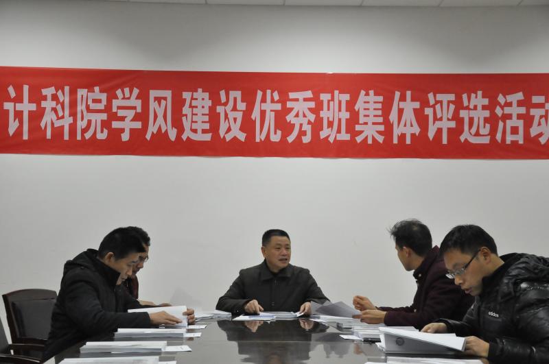 会议室里首先映入眼帘的便是一摞摞班级的资料,可以看出各班级都用心去进行学风建设,每一个班都准备了厚厚的一本学风建设记录。整体材料展示了计科院各个班级的优秀学习风采与班级一学期以来的活动开展情况。在评比开始前,我院各班级班长进行了互相的评价,力求评比的结果公平公正,之后我院各领导翻阅每个班级的学风建设记录,从15级的到17级的,并且经过仔细的考察之后,对各个班级的学风建设进行了点评并指出学风建设是班级建设的重要组成部分,良好的学风是班级进步的前提,希望各班能够继续加强学风建设,并对各个班级此学期的工作表示了充分的肯定。各位老师则综合平时上课的情况对各班学风建设进行了点评,同时也表达了对每个班级来年美好的期待。