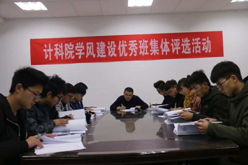 2017年12月28日,计算机科学与技术学院学风建设评比活动在会议室D2307召开,各位领导老师、各班级班长及学生会的部分成员参与此次学风建设评比。