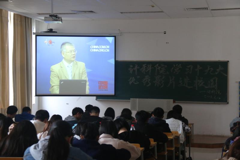 314日下午,计算机科学与技术学院在A3108举办了“学习十九大优秀影片进校园”的活动。本次优秀影片展选取了《中国访谈》中韩宇博士对十九大报告的解读和陈述教授对十九大党章修改的归纳。让同学们对十九大内涵和最新的政治资讯有了进一步了解。
