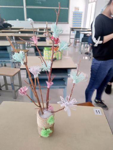 本次宿舍文化手工艺品制作大赛以变废为宝为主题。通过宿舍同学齐心协力的配合,各种废弃物又有了新的用途,它们又找到了新的“家”。本次展出由废弃物变成的“宝贝”主要包括精美纸插花、创意台灯、纸盒吉他等等。由废弃物加工制作而成的各种手工艺品形状不一、用途不一,但都集简单大方美观与实用于一体,充分体现了“变废为宝”的思想。