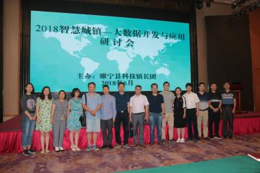 调研组应邀参加了睢宁县人才办、睢宁县科技镇长团主办的“2018智慧城镇——大数据开发与应用研讨会”,副县长王裕民,组织部副部长温喜民、人才办、科技局、开发区、公共信息服务中心、沙集镇等部门和乡镇领导,电子商务协会和云信软件、沙集部分电商企业的负责人,以及我校派往睢宁挂职的科技镇长团成员朱诚老师参加了交流活动。