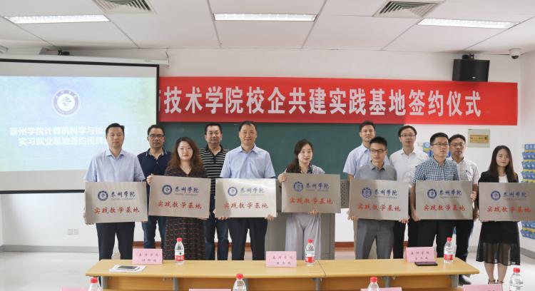第一阶段校企共建实践基地签约仪式由计科院副院长彭海静老师主持,计科院张中国院长致欢迎词。企业代表中国电信泰州分公司人力资源部唐继东部长发言表达了对优秀学生加入企业的欢迎,随后张院长代表学校与企业方代表签订了实践基地的协议,学校教务处副处长杨林和学工处副处长蒋成忠给用人单位实习就业基地授牌。