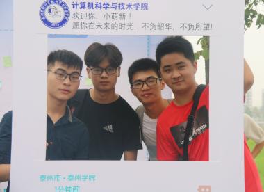 本次迎新,其中最亮眼的当属计科院布置在通往学生宿舍主干道上的特色宣传活动区。活动区主要由五大板块组成,分别是“师长说”、“学长说”、“萌新说”简称“三说”的迎新签名墙;“我与泰院第一次合影”的点赞留影区;计科学子风采展示、大四学生提前签约表、2017-2018学年度省级以上学科竞赛获奖表。