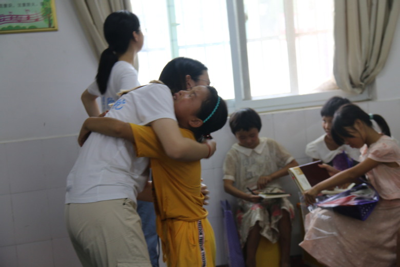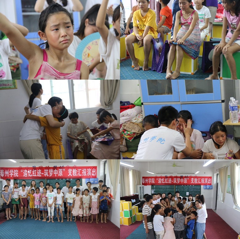 最后,本次汇演在暑期社会实践团队集体合唱的歌曲《再见》中完美的落下帷幕,“我会牢牢记住你的脸,我会珍惜你给的思念,这段日子在我心中永远都不会抹去…”熟悉的歌词带给了在场全员满满的感动。唱至动情处,小老师和学生们纷纷留下不舍的泪水,紧紧相拥在一起。“老师,你们就要走了吗?我还想继续听你们讲课,我好舍不得你们呀。”一群孩子紧紧握住老师的手哽咽着,流下不舍的泪水,实践团队员们为孩子们拭去泪痕,勉励孩子们要努力学习。伴随着本次汇演的结束,“追忆红迹,筑梦中原”社会实践团队为期16天的支教活动画上了一个完美的句号。