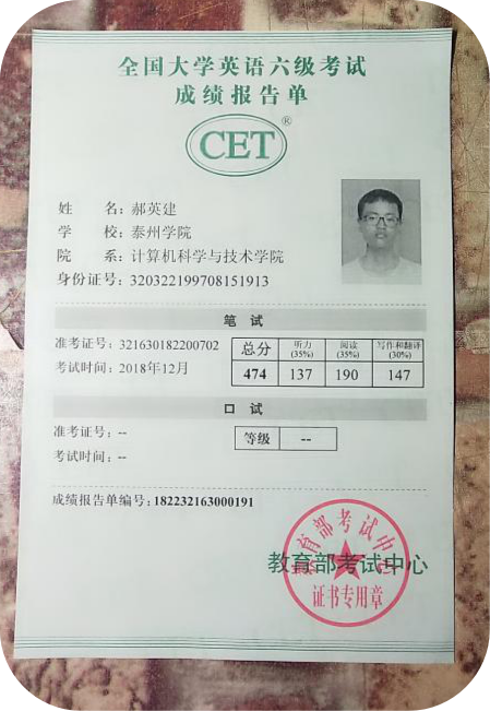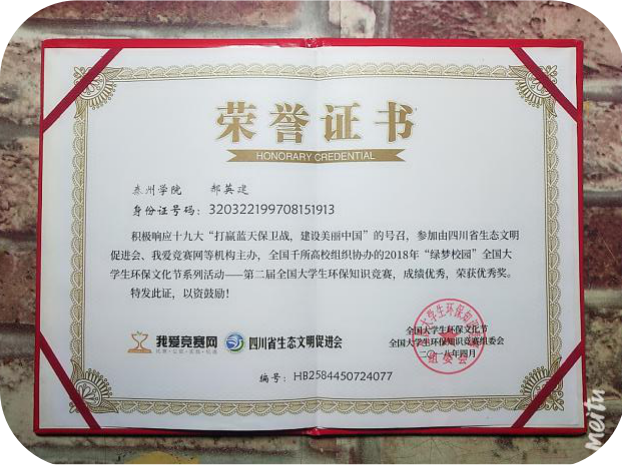 作为一名大学生,我深知,学习是我的职责。刚进入大学生活,在其他同学放松自我的时候,我便时刻鞭策自己:只有拼搏奋斗,才能无悔青春。大一、大二学年便取得了名列前茅的好成绩,连续两年获得“校级一等奖学金”、“校级二等奖学金”。在努力学习的同时,我也不忘其他能力的培养与提高,积极参加各种比赛,曾获得“全国大学生环保知识竞赛优秀奖”、第五届“互联网”创新大赛三等奖、全国大学生英语竞赛三等奖、英语六级。除此之外,我也注重专业知识的学习和掌握,曾考取了中级“数据库系统工程师”、全国计算机信息高新技术考试合格证书。在积极参加比赛的同时,我的综合能力取得了显著的提高。