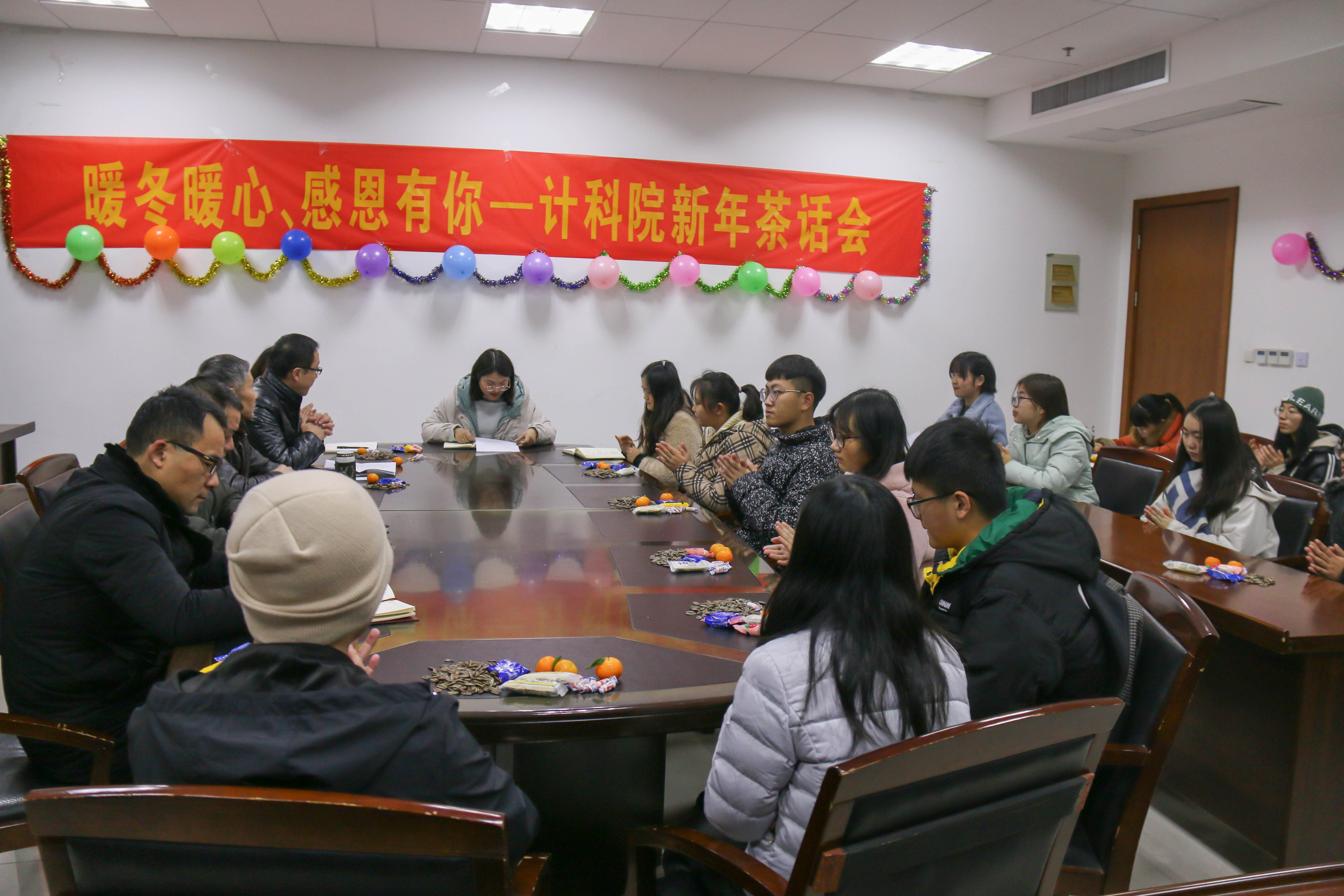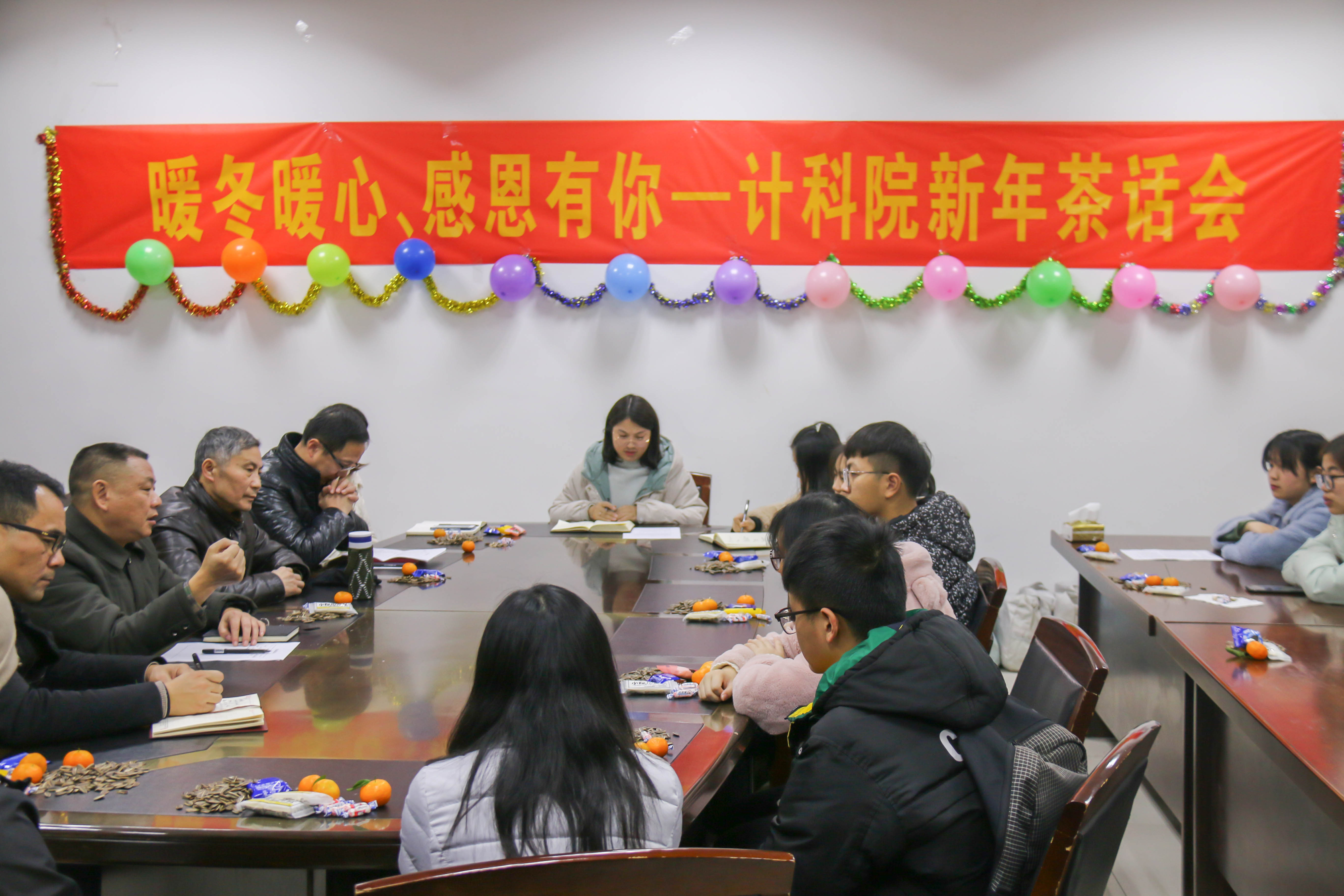 1月3日下午,计算机科学与技术学院在行政楼D2307举行了“暖冬暖心,感恩有你”新年茶话会活动。参加本次茶话会的有院关工委副主任邹跃老师、学工处副处长蒋成忠老师、校资助管理中心王硕老师、计科院党总支书记董学森老师、计科院党总支副书记、副院长陈茂国老师、计科院学工办老师以及部分学生代表。