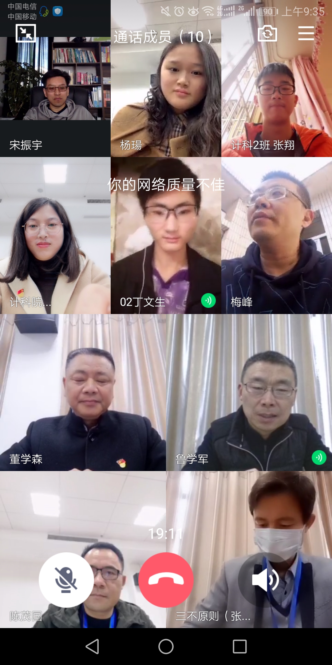连线中,目前滞留在湖北省黄冈市19计科1班丁文生同学和湖北省孝感市19计科2班张翔同学分别向大家报告了身体状况、生活状况、学习状况、思想动态、当地疫情情况等,两位同学均表示家人和自己都很安全,请领导和老师们放心。