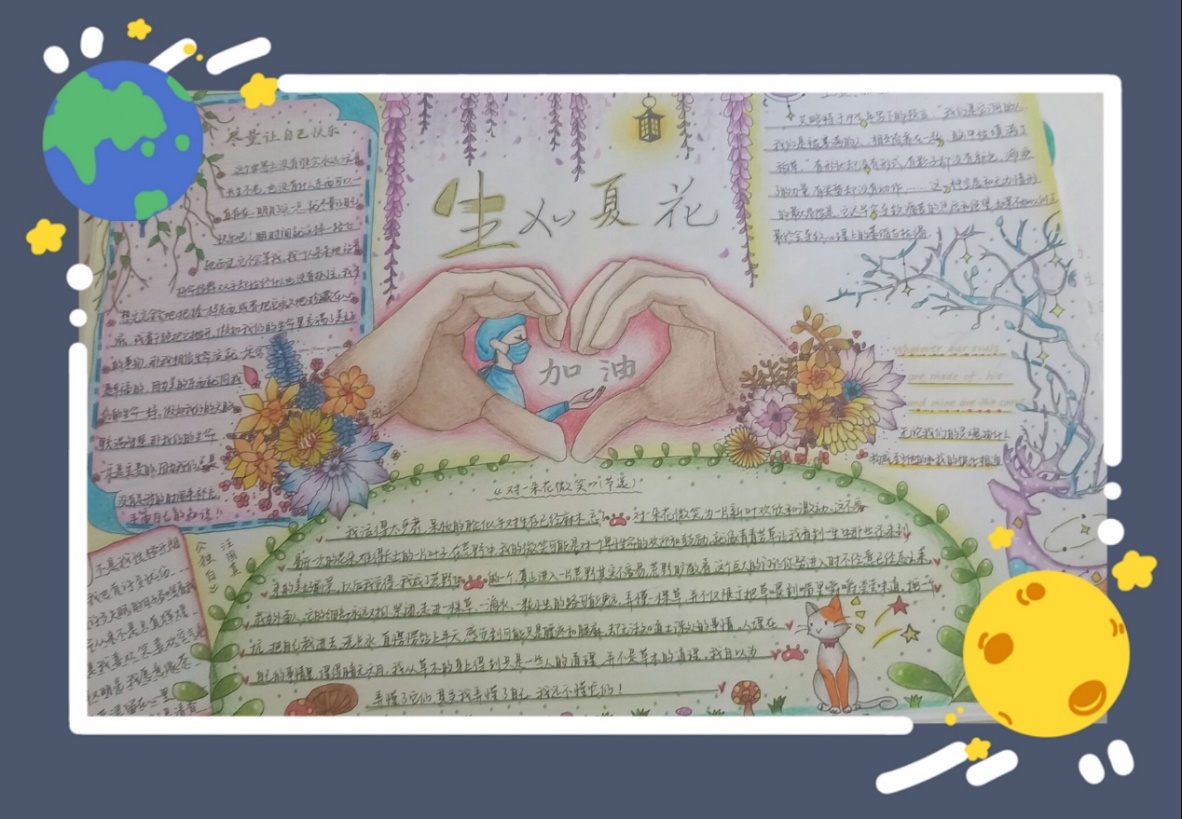 正值疫情防控的特殊时期,身为泰院学子的我们,积极响应学校号召,齐心战“疫”,以画聚心。同学们满怀热情,将疫情防控和对医护工作者的美好祝福融入其中,创作出一幅幅以携手同心、抗击疫情相关的绘画作品。有的以“敬畏生命,尊重自然”为主题将自己对生命和自然的敬畏绘出;有的以“生如夏花”为主题的,以简洁的话语描绘出生命要像夏季的花朵那样绚烂夺目地开放,暗示着中间的白衣天使们就像夏花一样;有的以“逆行者”为主题,弘扬他们不惧生死,大爱无私的精神。