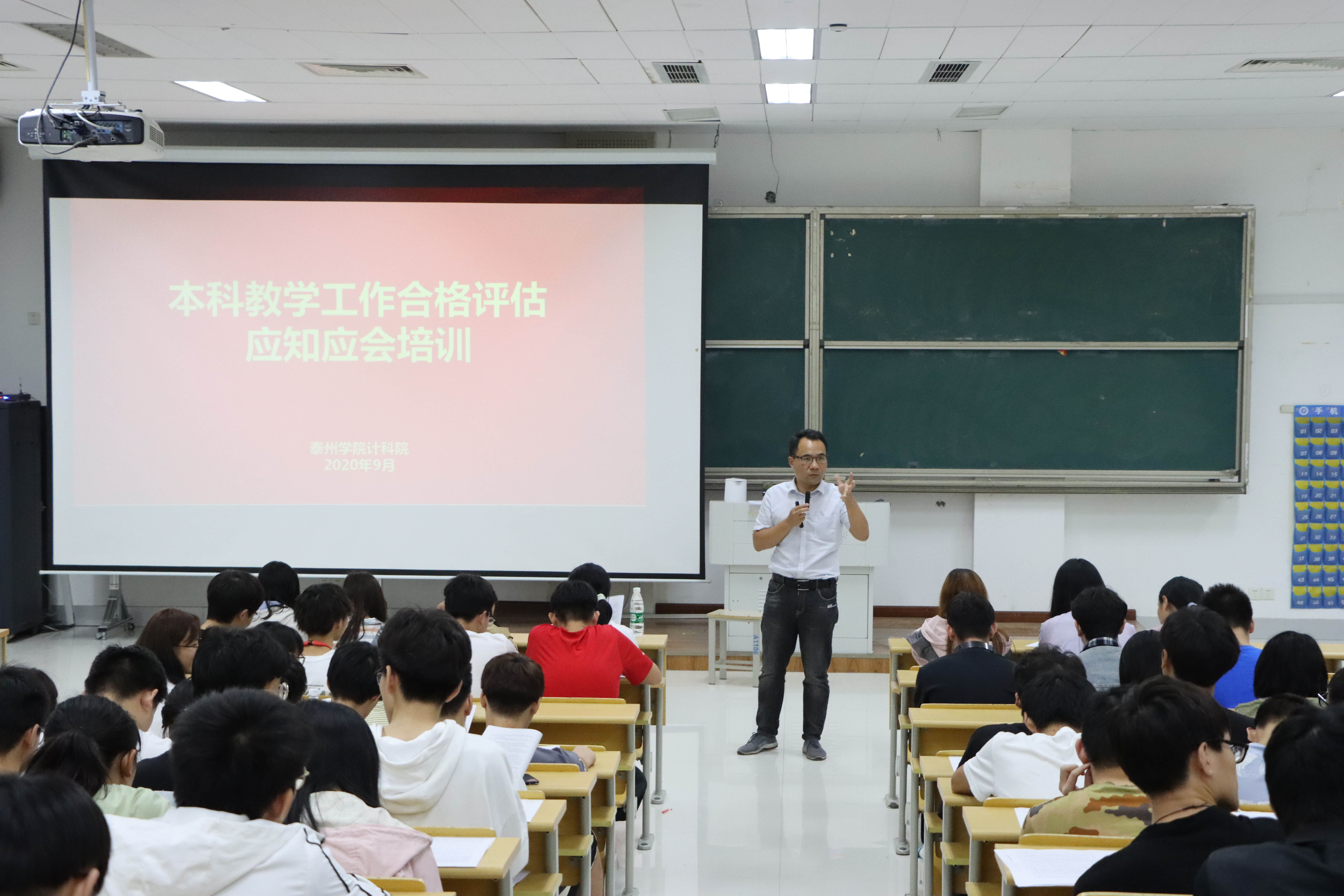 计科院党总支副书记、副院长陈茂国老师分别从迎评基本知识、专家深度访谈参考提纲、学生行为要求等三方面进行深入细致的分析讲解。讲解过程中,陈茂国老师结合事例强调了应知应会的重点难点,并且做了进一步分析以便帮助学生更好地理解。讲座的最后,陈老师号召在座的学生们查漏补缺,有条不紊地完成评建的各项工作,全力以赴做好各项迎评迎检工作。