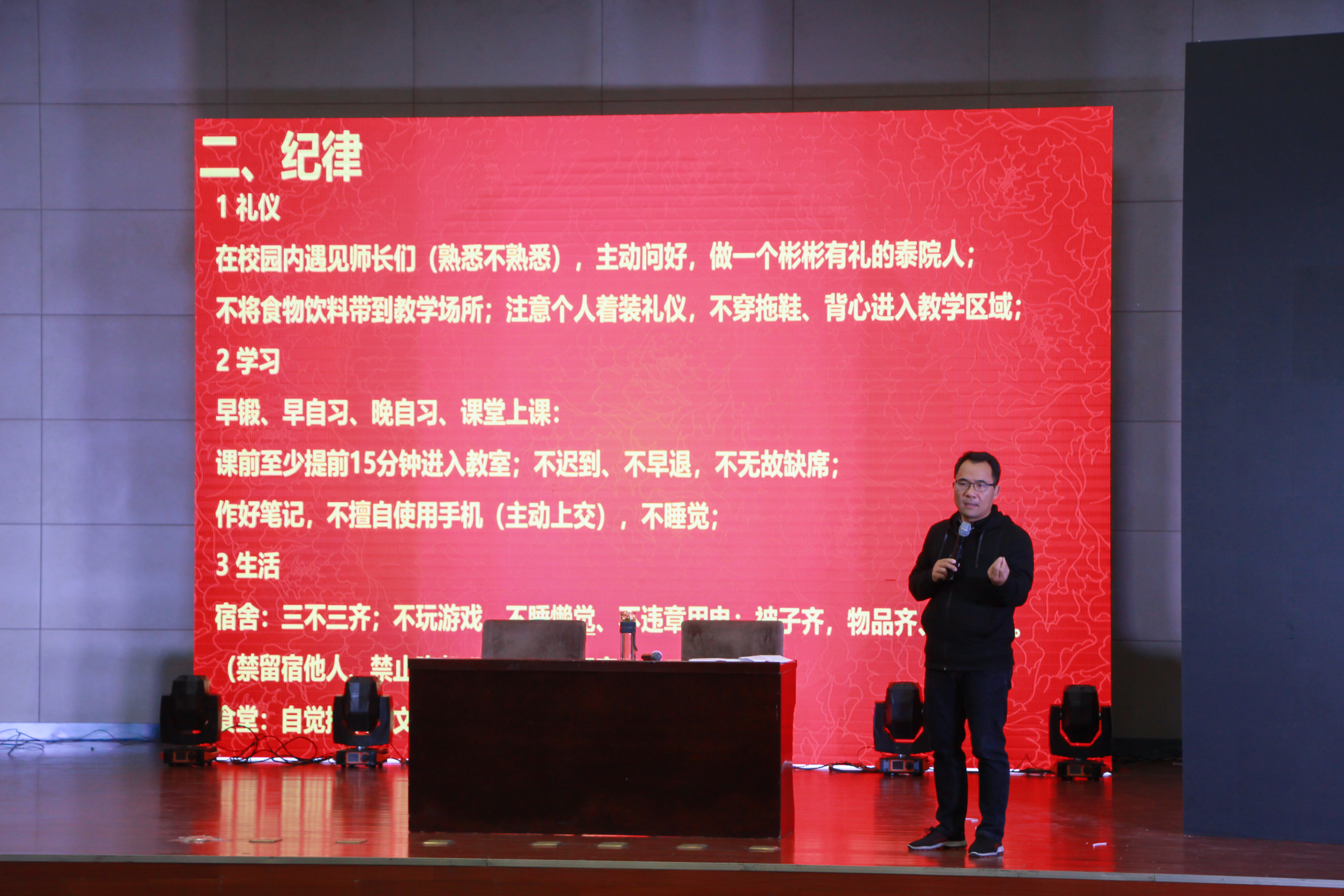 陈茂国老师以“融入、纪律、迎评、博雅、榜样”五个关键词为新同学们介绍了大学与高中的不同。他提出了“两万行代码”的专业学习要求,期望大家做好读大学的各种准备、快速融入泰院生活。他介绍了考取985、211高校、省委组织部选调生,被百度、新华三等IT巨头录用,参加西部计划、苏北计划,以及自主创业和赴国外高校留学的2020届优秀毕业生们的事迹,激励2020级新同学们“求真、求善、求美,勤学、善思、敏行”,做新时代的阳光大学生。(计算机科学与技术学院 许红梅)