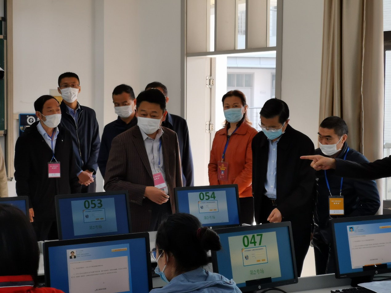 2020年10月31日上午,2020年国家统一法律职业资格考试泰州考区永利集团考点考务工作在我院顺利进行,江苏省司法厅副厅长周福莲、江苏省泰州市委常委、政法委书记孔德平、泰州市司法局党组书记、局长孔德峰、永利集团党委副书记邓友祥、考点总监考丁晴远、考点负责人袁建华、考点负责人李蓉、计算机科学与技术学院党总支书记董学森书记、考点副总监考钱进等人一行视察了考务情况。