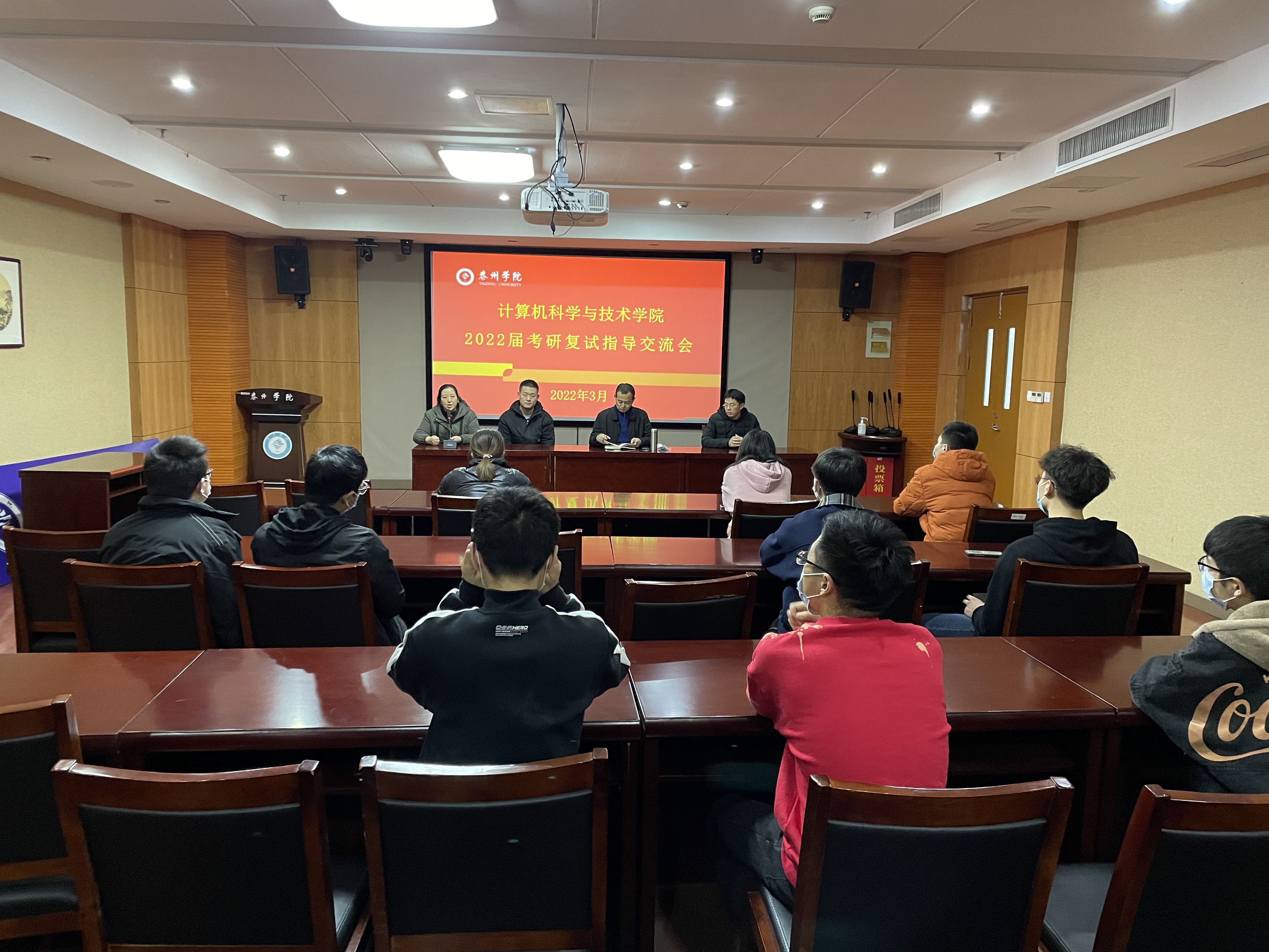 为了更好地开展2022届毕业生考研工作,为考研学生提供全方位指导和全过程服务,3月份以来,计算机科学与技术学院以线上线下相结合的形式,先后举办了复试指导、线上面试指导、调剂指导等系列考研讲座。计算机科学与技术学院院长崔宝同、党总支副书记栾吉、老师蔡程飞、老师张珠楠以及毕业班班主任、辅导员老师,2022届考研学生参加会议。