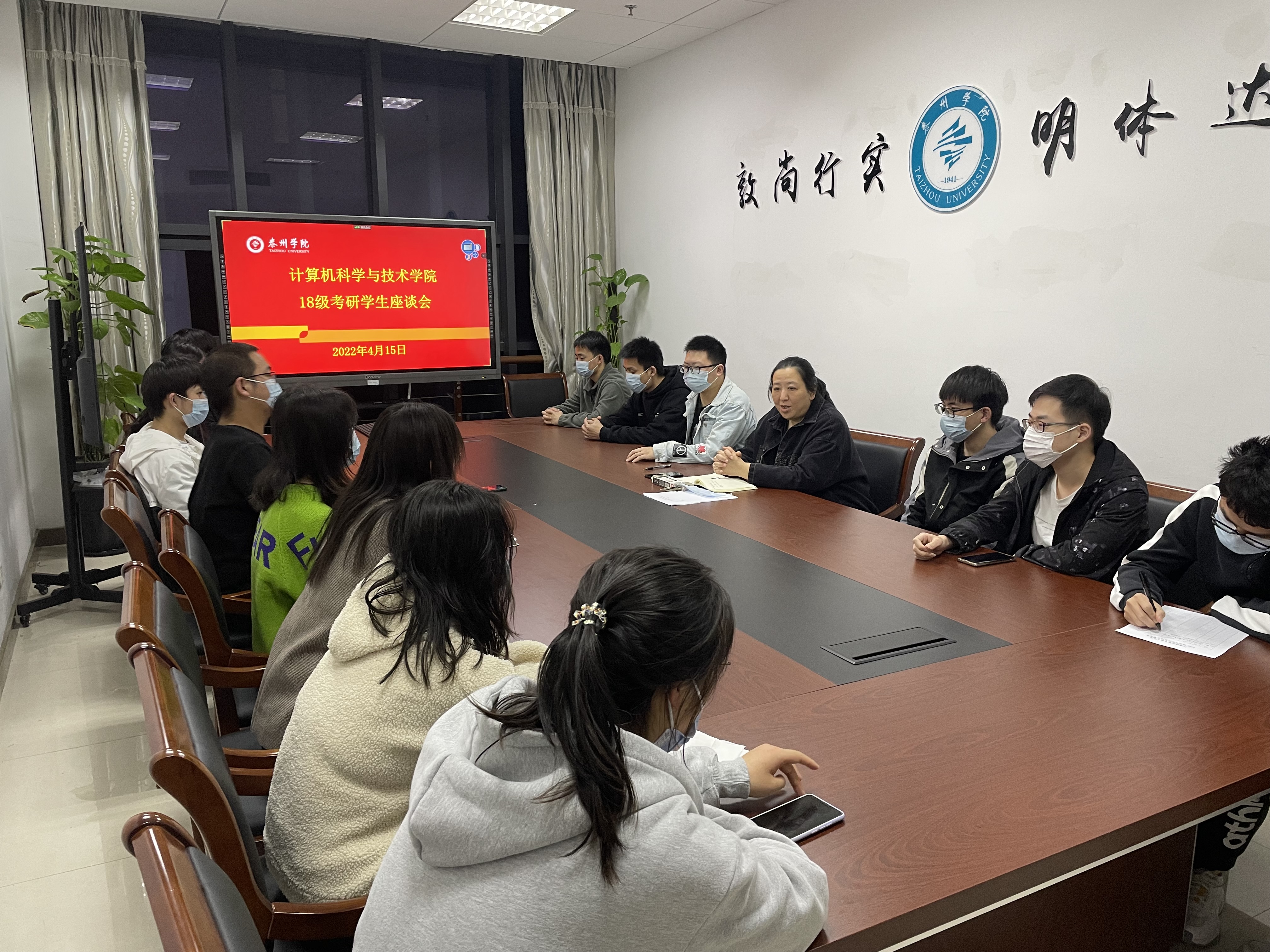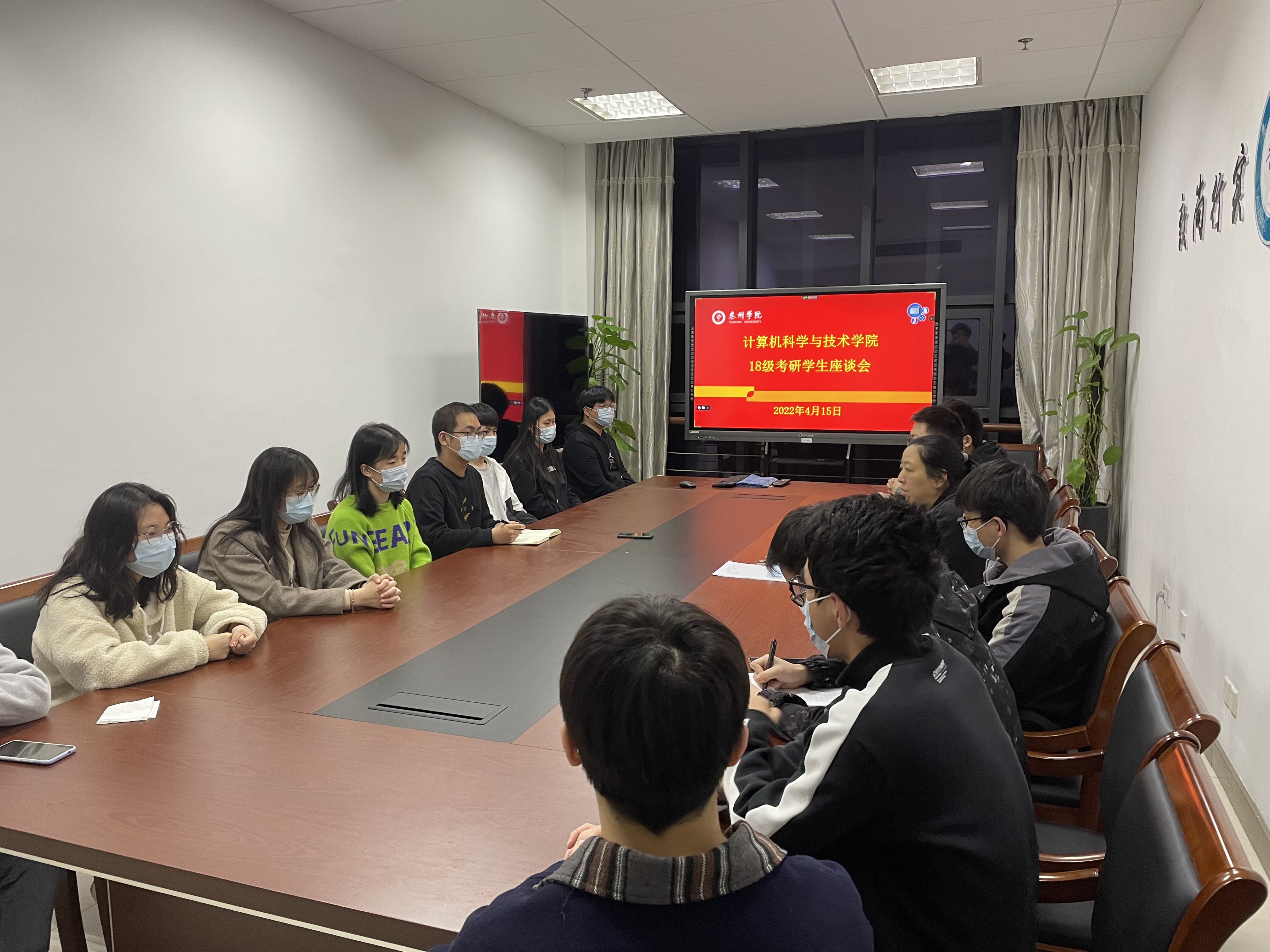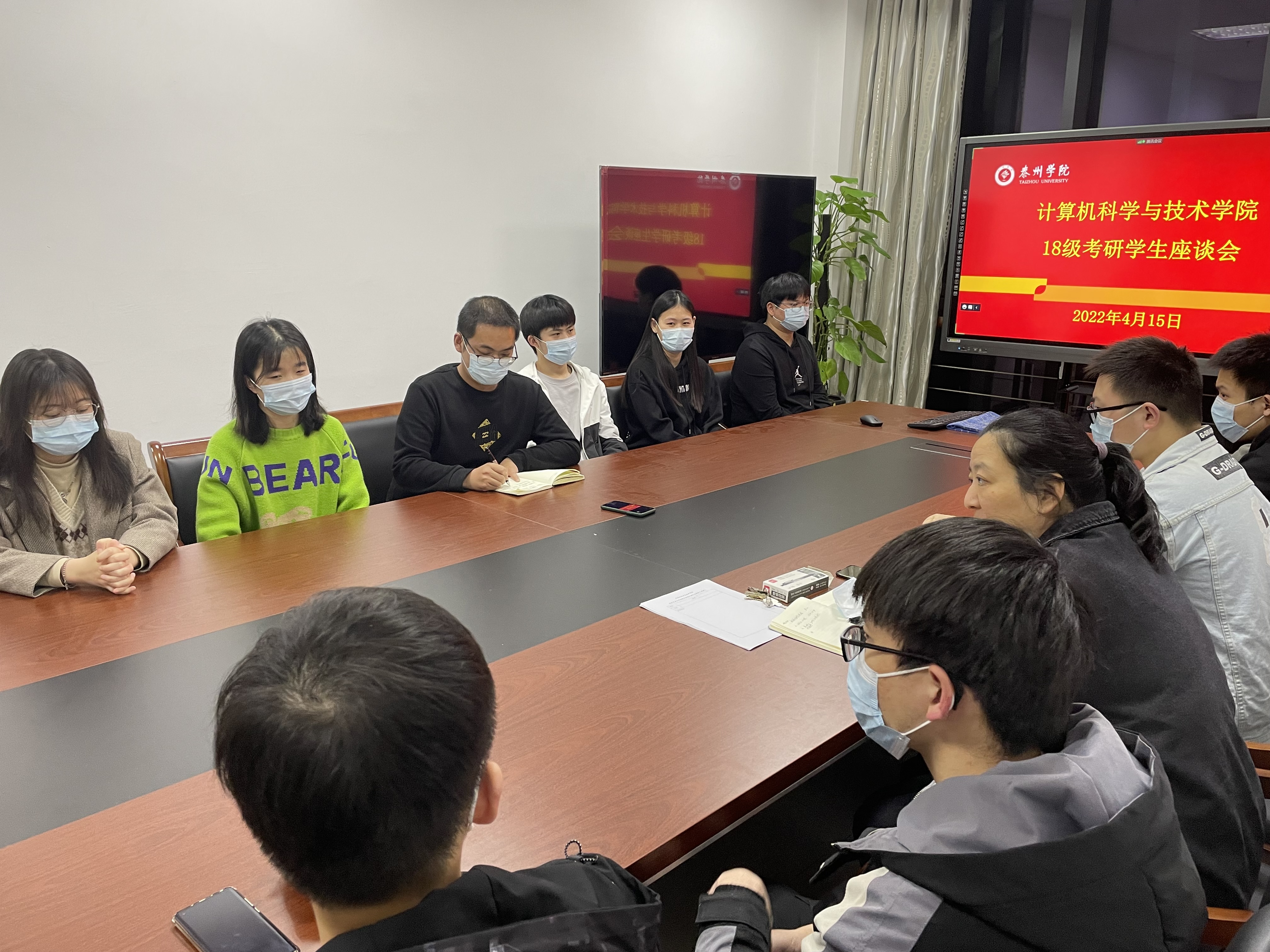 4月15日晚,计算机科学与技术学院召开18级考研学生座谈会。会议采用线上线下相结合的方式,党总支副书记栾吉、副院长钱进、副院长徐艳、辅导员朱敏浩,以及2022届部分考研同学参加会议。