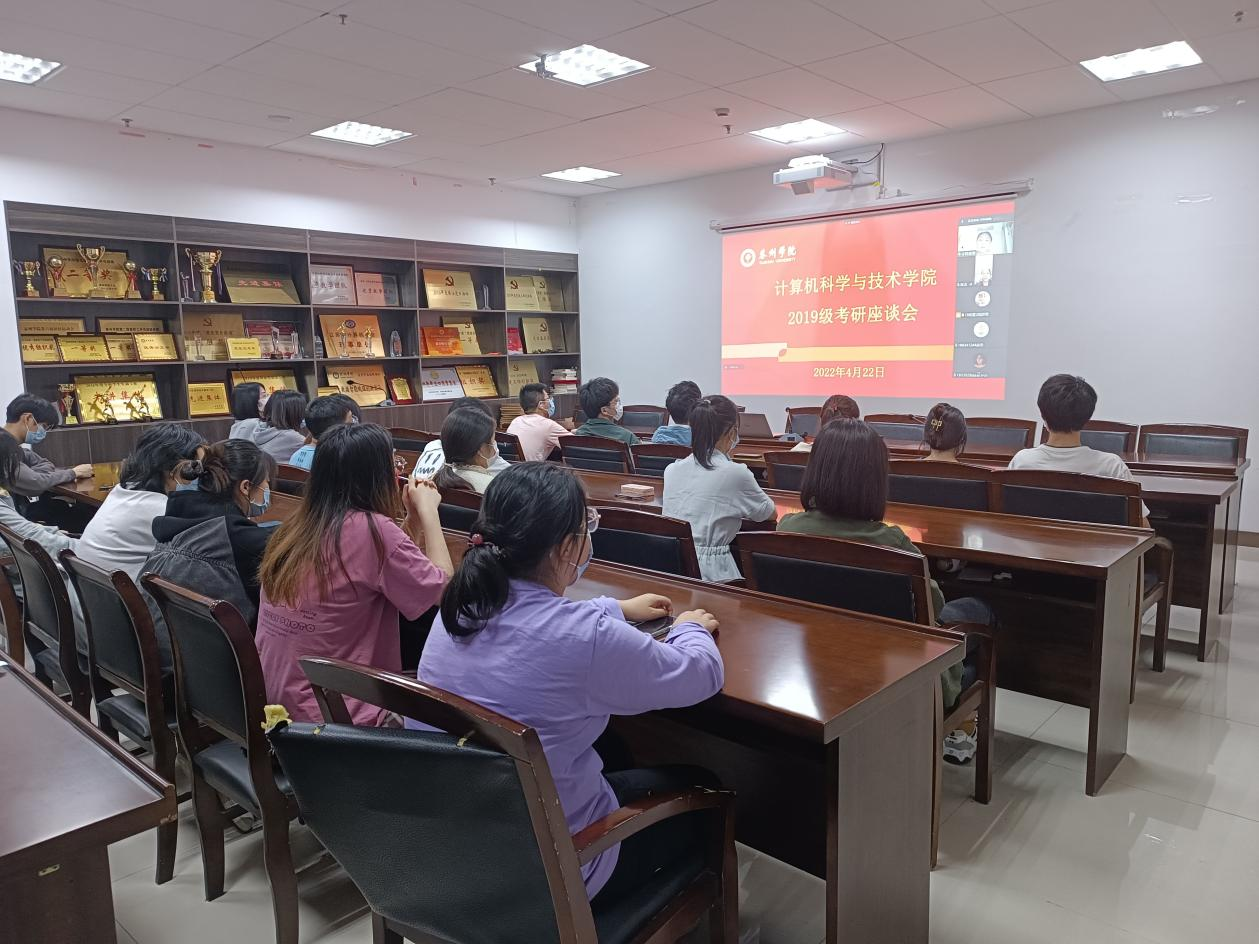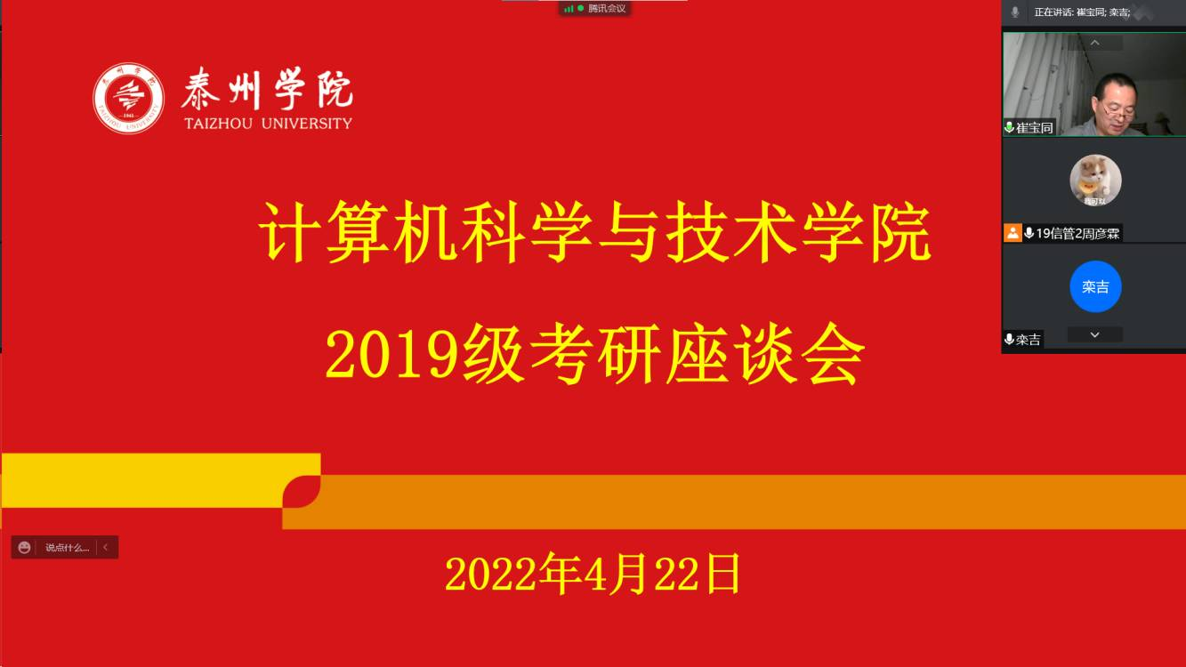 为营造良好的考研氛围,增强学生考研的信心,激发考研学生的斗志,4月22日晚7点,计科院于行政楼D2307采取线上线下相结合的方式开展了19级考研动员会,计科院院长崔宝同、计科院教学副院长徐艳、2019级各班班主任、辅导员及19级考研学生参加了本次活动。活动由计科院党总支副书记、副院长栾吉老师主持。
