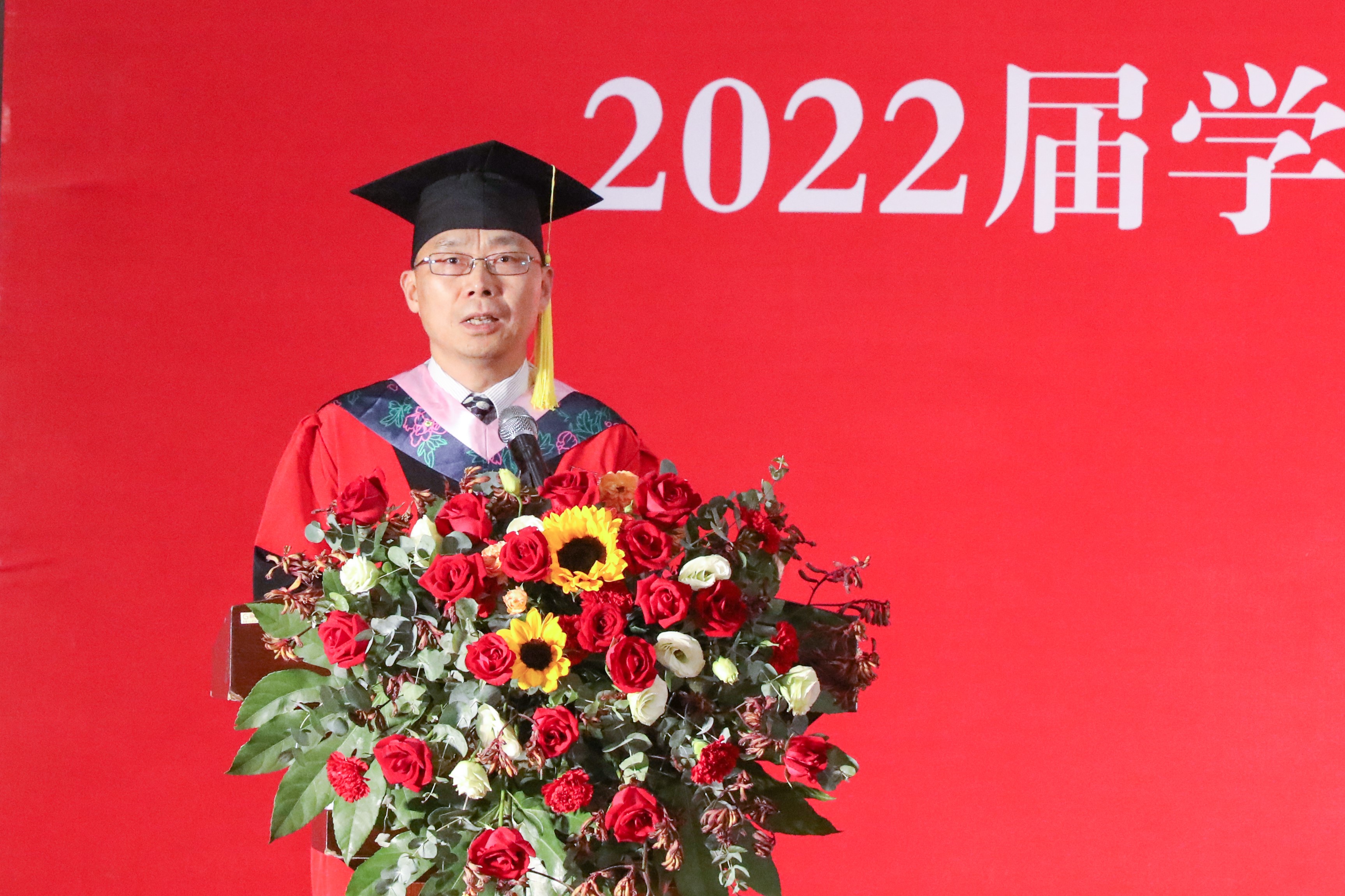 典礼在庄严的国歌声中拉开帷幕。鲁学军发表了题为《在青春赛道上奋力奔跑》的讲话。他代表全体校领导、全校师生向圆满完成学业的242名毕业生们表示了热烈的祝贺;诚挚感谢同学们以“泰院人”的使命担当投身学校和学院的大事要事,以“青年人”的朝气蓬勃为学校增添了生机和活力。他希望同学们牢记习近平总书记对新时代中国青年的嘱托,在青春的赛道上奋力奔跑,并提出四点期望:一是坚定理想信念,树立远大理想,找准奔跑的方向;二是主动担当作为,投身强国伟业,融入奔跑的洪流;三是乐于吃苦耐劳,磨砺意志品格,坚定奔跑的信念;四是保持平和心态,创造幸福生活,迈实奔跑的脚步。