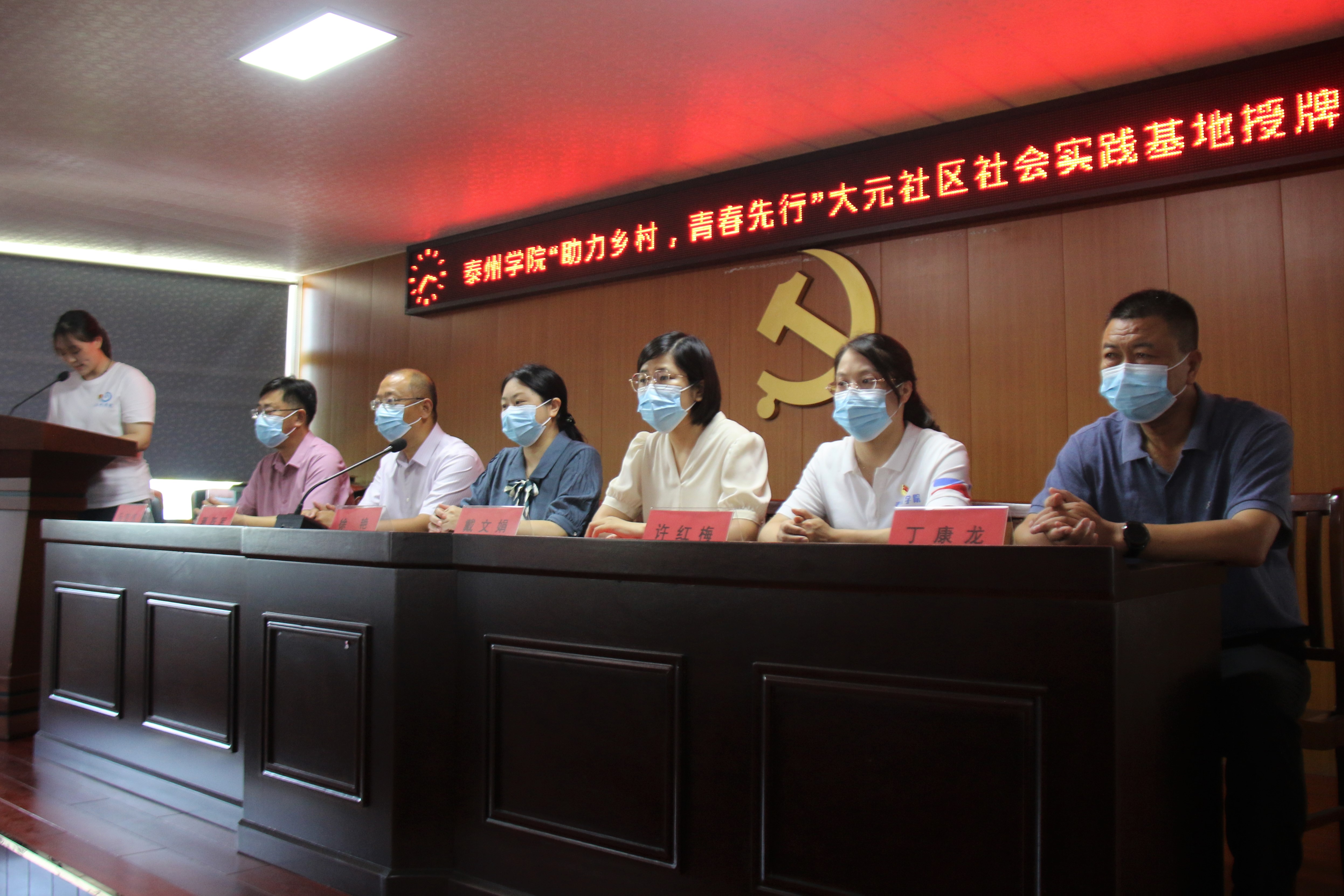 7月19日上午,yl9193永利集团“助力乡村 青春先行”暑期支教团队在泰兴市元竹镇大元居委会举行开班仪式暨实践基地授牌启动仪式。元竹镇副镇长戴文娟、泰兴市教育局督导室副主任蒋跃军、元竹镇大元居委会党总支书记丁康龙、元竹小学校长马吉良、yl9193永利集团副院长徐艳及暑期社会实践团队师生共同参加仪式。