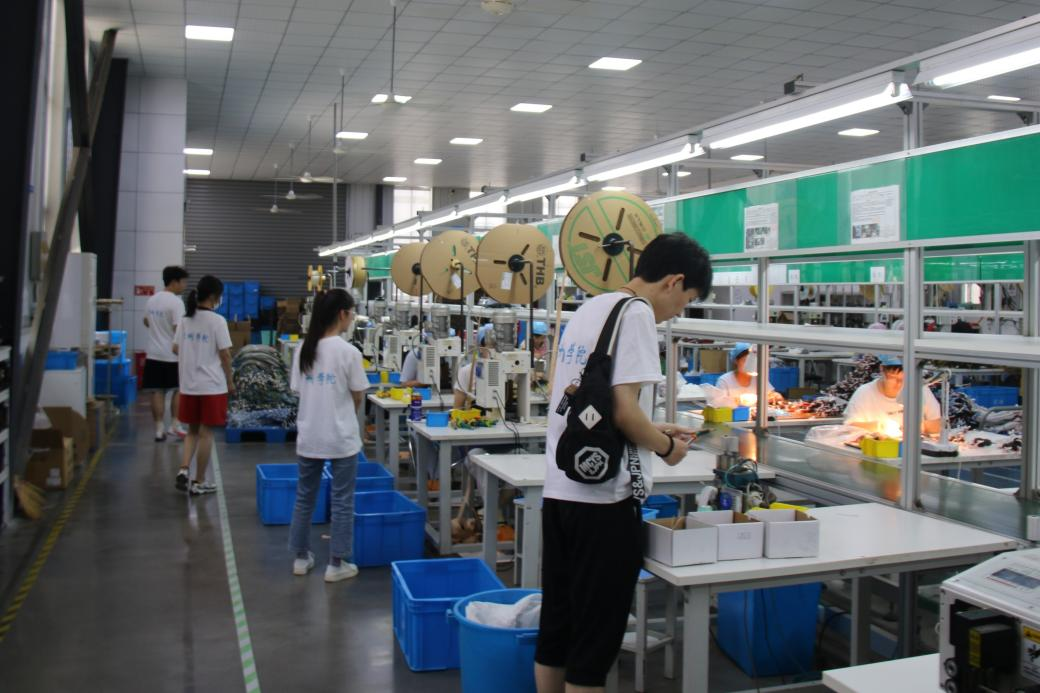 在周春建的介绍和引领下,团队成员依次参观了企业办公区、生产车间和后勤仓库。通过参观走访、聆听讲解、交流答疑等方式,激发学生们的创业就业热情,增加学生们对企业运营管理模式、选拔培养人才机制的认识,帮助学生有针对性地进行生活及学习的规划。