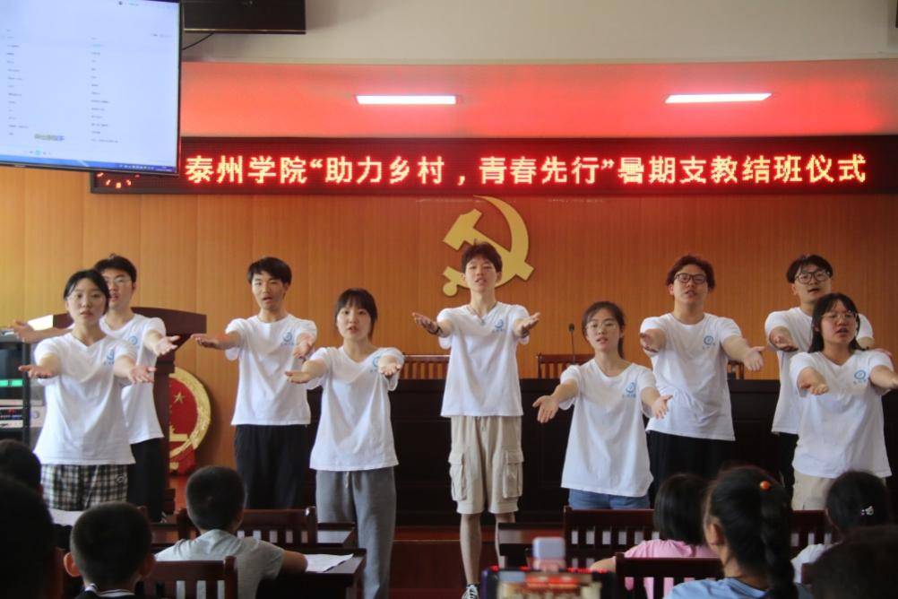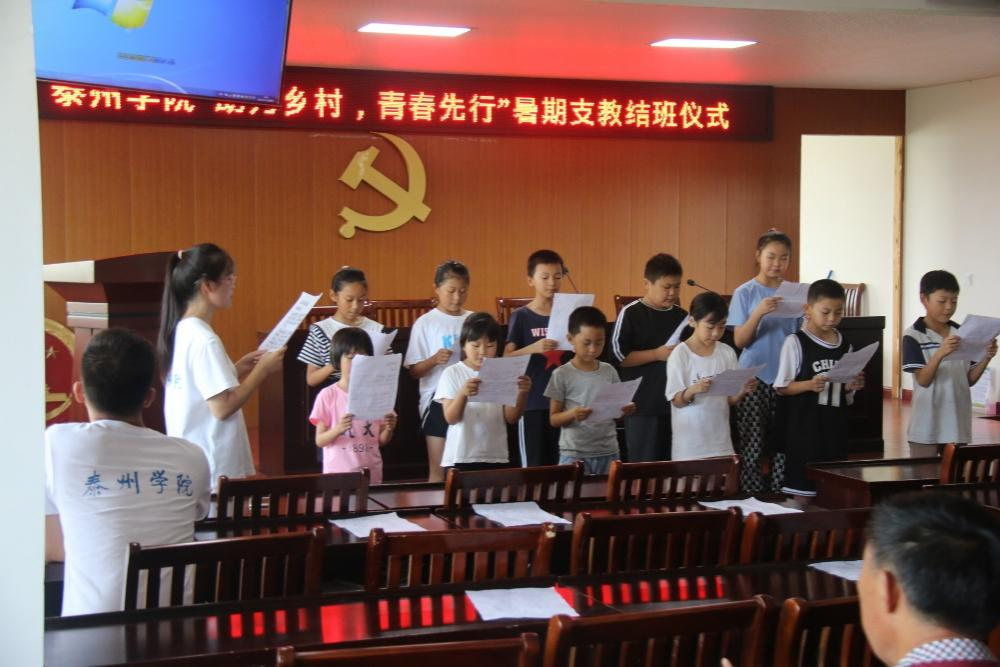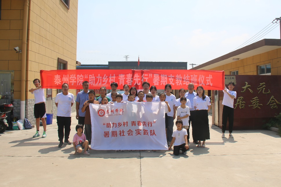 7月29日上午,yl9193永利集团“助力乡村 青春先行”暑期支教团队在泰兴市元竹镇大元社区居委会成功举办了结班仪式。泰兴市教育局督导室副主任蒋跃军、元竹镇大元居委会党总支书记丁康龙、暑期社会实践团队师生及支教班学生共同参加了此次结班仪式。