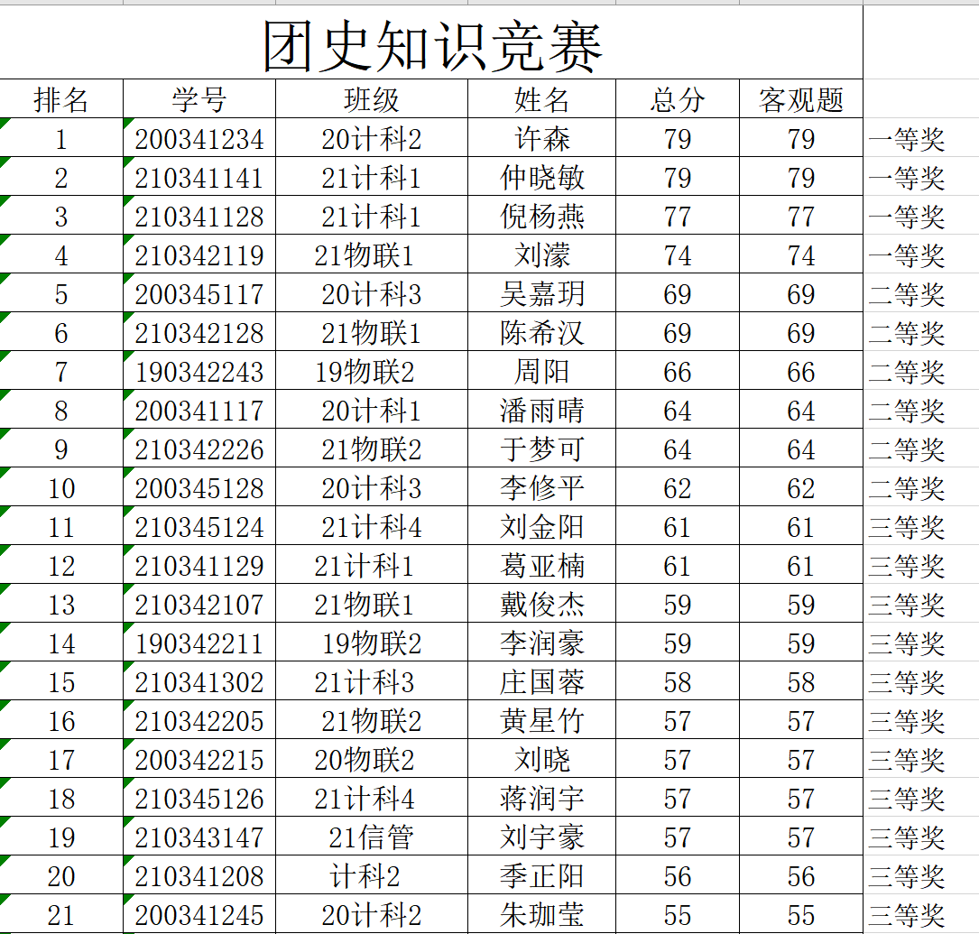 3.团史演讲:通过前期报名、线上演讲、评委打分等形式开展团史演讲活动,最终评选出了3个一等奖、5个二等奖、7个三等奖。该活动使参赛选手深刻地了解了团的历史,并通过演讲宣传的形式使各位团员更加团结,引领同学们了解党团历史,坚定了党的领导地位。