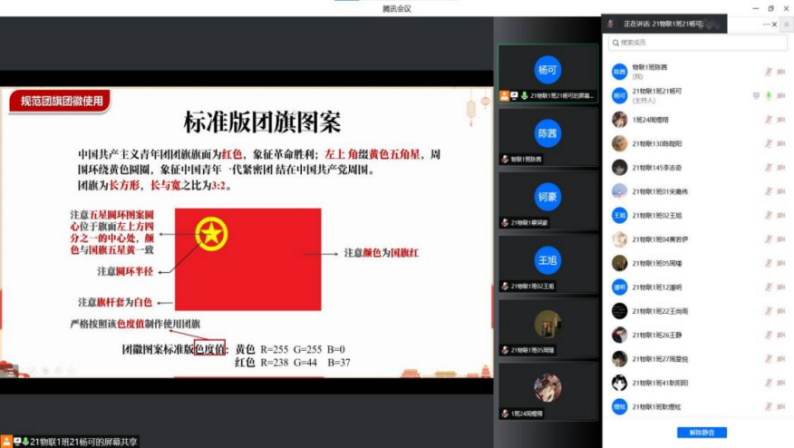 “团史团徽的规范使用集中学习”活动,对于团旗团徽的政治意义以及历史内涵做了详细的讲解,规范了同学们对于团旗团徽的使用,强化了团旗团徽在同学们心中的地位。