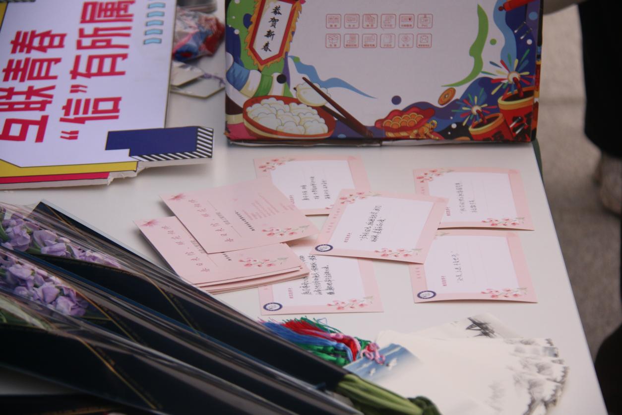 活动期间,大家纷纷被美丽的花束及礼品吸引前来围观,在志愿者们热情招呼下,现场互动氛围十分融洽。在“互写卡片”环节,每位参与者都可以从盲盒中抽取来自老师及志愿者们手写的明信片,美好的祝愿在印着“心想事成”代码的明信片上相互传递,让返校学子感受到了学院真挚的祝福与心意。