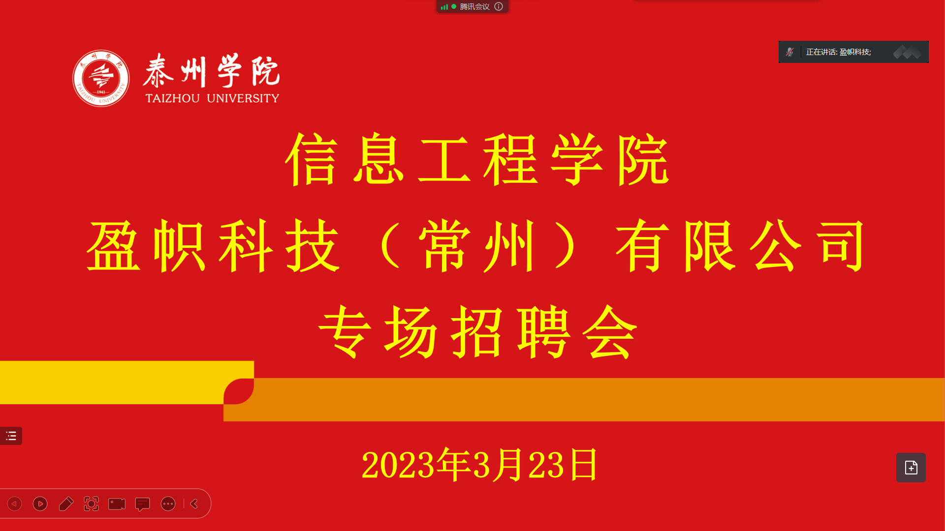 为帮助2023届毕业生解决就业问题,3月23日下午,yl9193永利集团举办盈帜科技(常州)有限公司线上专场招聘会,学院党总支书记朱诚参加会议。