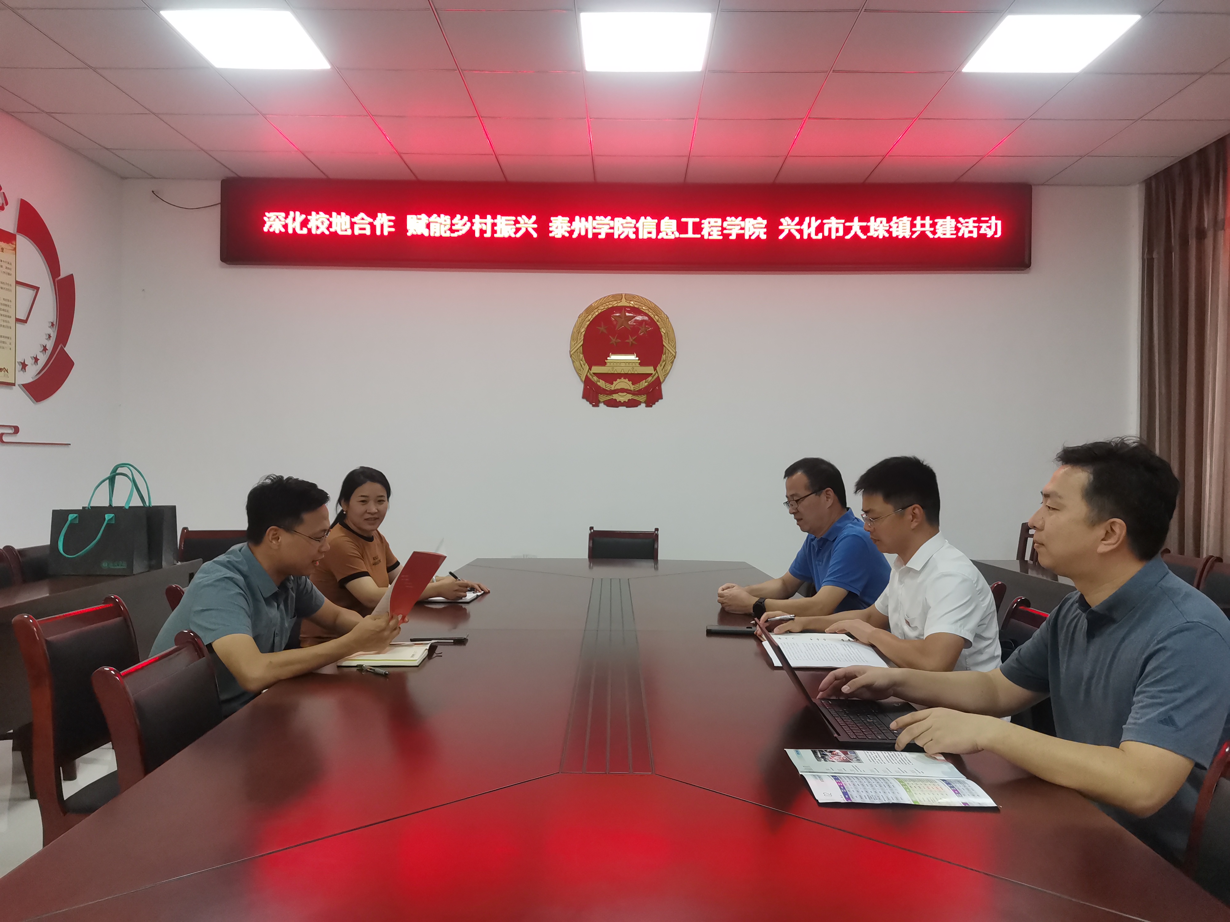 9月7日,我院党总支书记朱诚带领班子一行走访调研兴化市大垛镇,双方就加强校地合作工作进行交流对接,并召开专题研讨会。