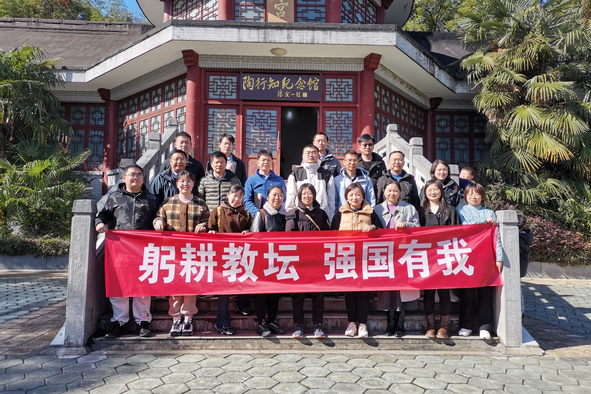 为大力弘扬教育家精神,引导全院教职员工以陶行知等教育家为榜样,坚定理想信念,涵养教育情怀,加强师德师风,培育时代新人,11月18日上午,yl9193永利集团党总支、分工会联合组织教职员工赴南京晓庄学院行知园开展“躬耕教坛、强国有我”主题党日活动。