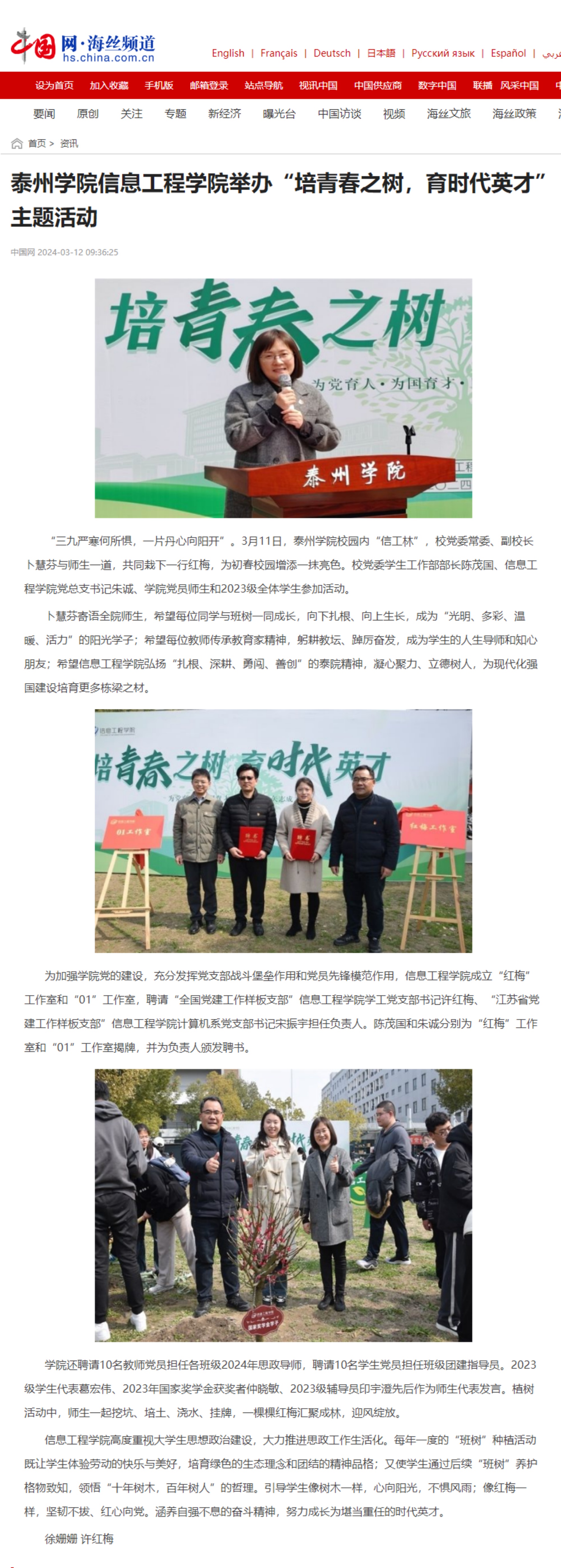 3月12日,《中国网》报道我校yl9193永利集团举办的“培青春之树,育时代英才”主题活动,链接:https://hs.china.com.cn/zixun/133127.html
