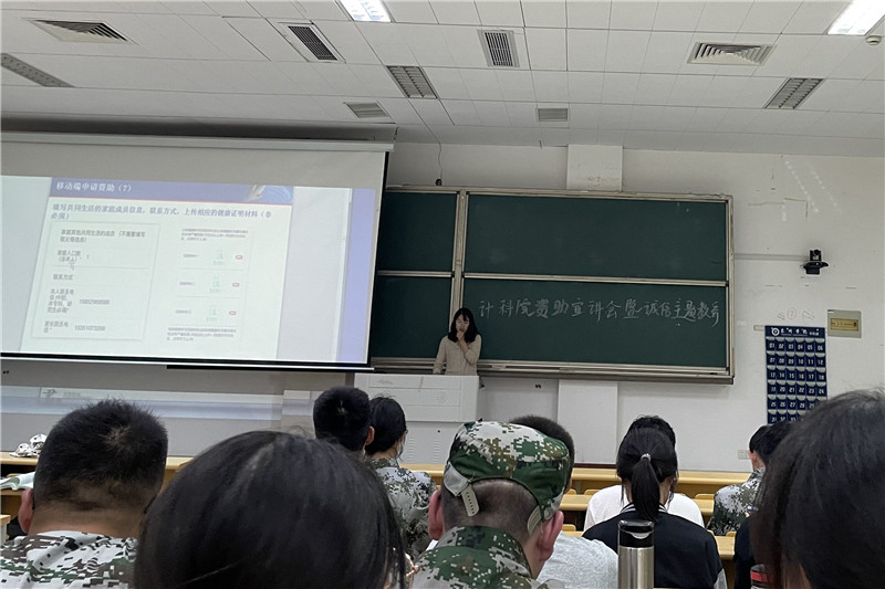 为深入宣传国家关于普通高校大学生资助政策,让新生了解国家资助政策体系,增强当代大学生的诚信意识,强化资助育人成效,10月19日,计算机科学与技术学院在教学楼A2108开展了新生资助宣讲会暨诚信主题教育。资助辅导员许红梅主讲,2021级新生代表参加了本次活动。