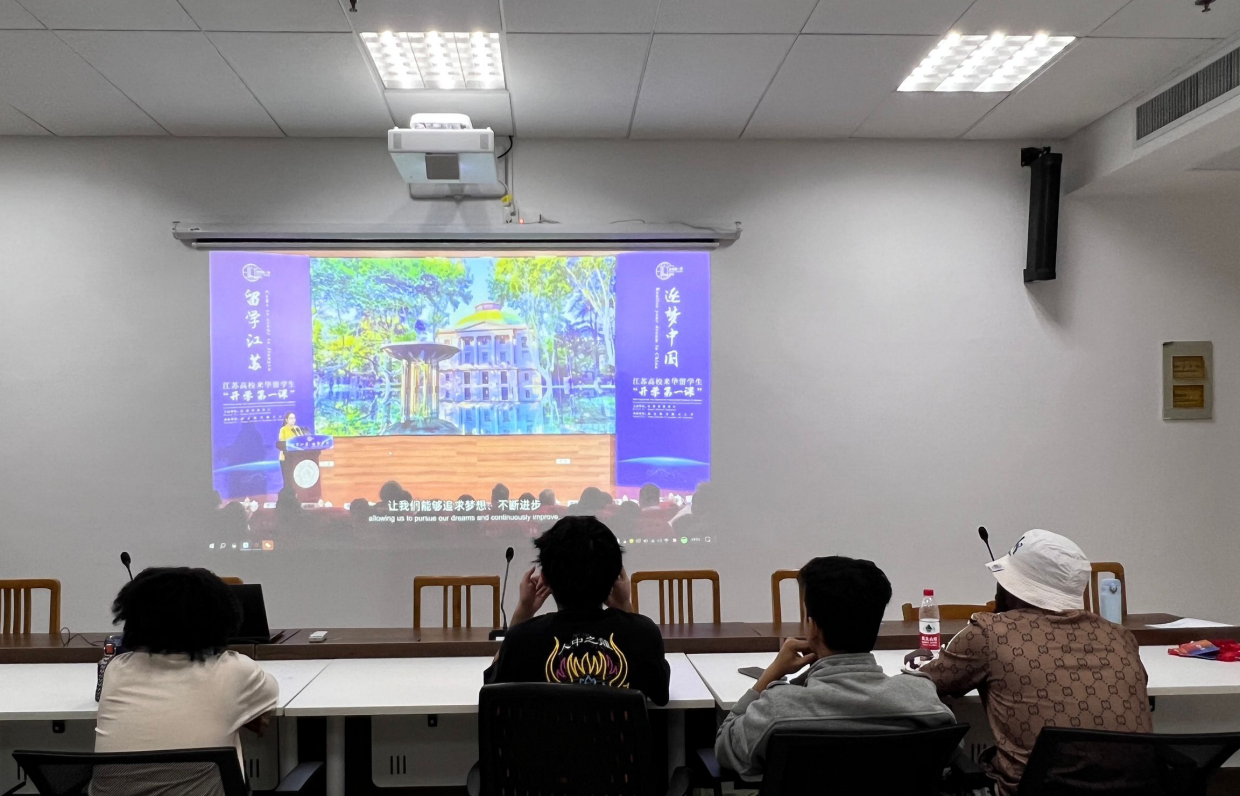 10月13日晚上,学院组织全体在校留学生观看“留学江苏·逐梦中国”2024年江苏高校来华留学生“开学一课”录播视频。此次“开学第一课”不仅是一场充满仪式感的迎新会,更是留学生们了解江苏、逐梦中国的新窗口。与会留学生全程认真聆听,仔细记录。课程结束后,来自马来西亚的林维健同学表示观看课程后,对中国、对江苏、对自我留学规划有了更加清晰的认知,日后将秉持“扎根、深耕、勇闯、善创”的泰院精神,努力成长为国际友好使者,为中外文化交流互鉴搭建桥梁,为共同推动构建人类命运共同体贡献力量。