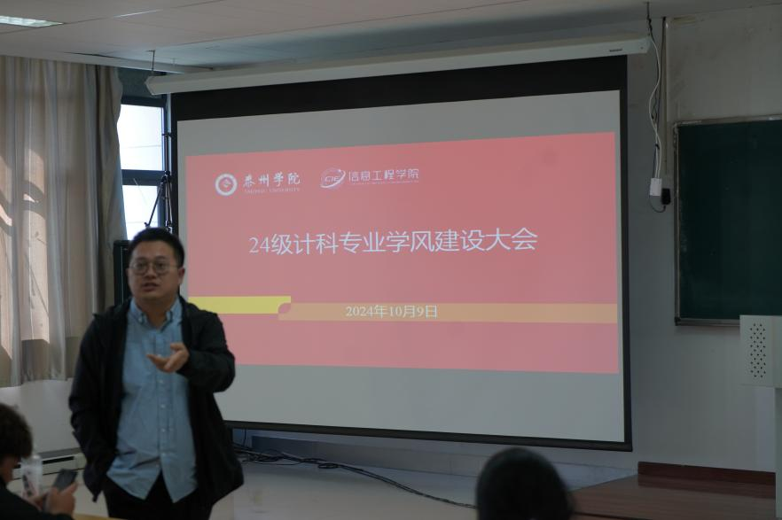 计算机系系主任谭立兴针对计算机专业的学风建设,介绍了学校的教学条件和相关规章制度,并向24级新生提出了几点期许。首先,希望同学们树立正确的学习观和价值观,认真对待每一门课程,将课堂知识落实到实践中;其次,切忌抄袭和作弊,大家要尊重知识,追求真理。最后,鼓励新生积极参与学科竞赛和各类学术活动,以提升自我,锻炼能力。希望每位同学都能在良好的学术氛围中成长,成为具有创新精神与实践能力的人才。