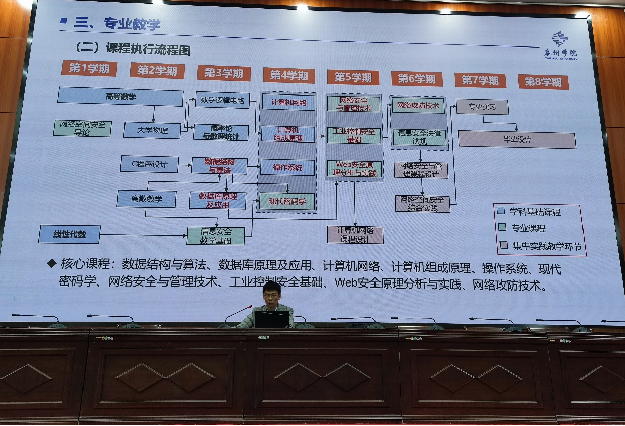 会上,朱鹏程老师对网络空间安全专业人才培养方案进行了细致的解读。他详细阐述了学院的人才培养方案,包括培养目标、课程设置、实践教学、毕业条件等方面,并给出了详细的学习建议,旨在帮助学生明确学习方向,激发学习兴趣。