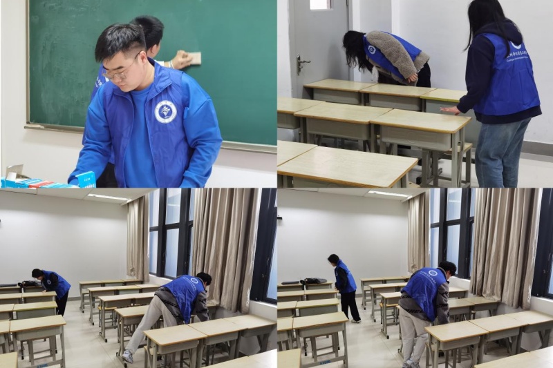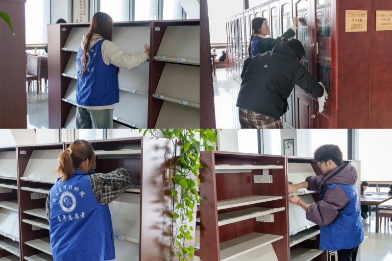 3月19日至3月26日,学院陆续组织200余名志愿者,分组在学校教学楼、图书馆及实验室开展“校园焕新行动”。志愿者们手持抹布、扫帚等工具,对教学楼走廊、教室门窗、多媒体设备进行深度清洁,协助整理归还书籍、清洁书架积尘。在实验室,志愿者们运用专业设备对电脑键盘、屏幕进行清洁,并逐一检查设备运行状态,协助建立维护档案。“劳动虽小,却能真切感受到为师生服务的意义。”参与活动的詹戴磊同学感慨道。