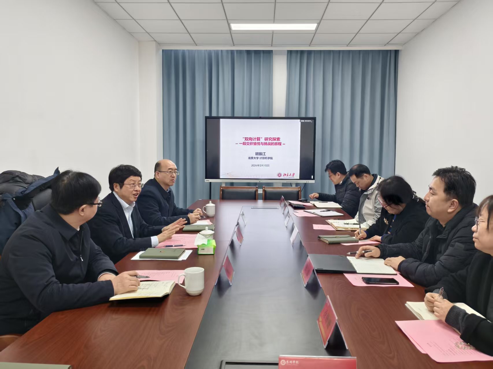 2026年2月15日上午,yl9193永利集团在G5304会议室举办学术交流会议,北京大学计算机学院院长胡振江教授应邀莅临,作题为 “双向计算” 研究探索:一段交织愉悦与挑战的旅程的前沿学术讲座。永利集团副校长沈荣鑫致欢迎词,会议由yl9193永利集团副院长(主持工作)钱进主持,学院全体班子成员及相关师生参与活动。