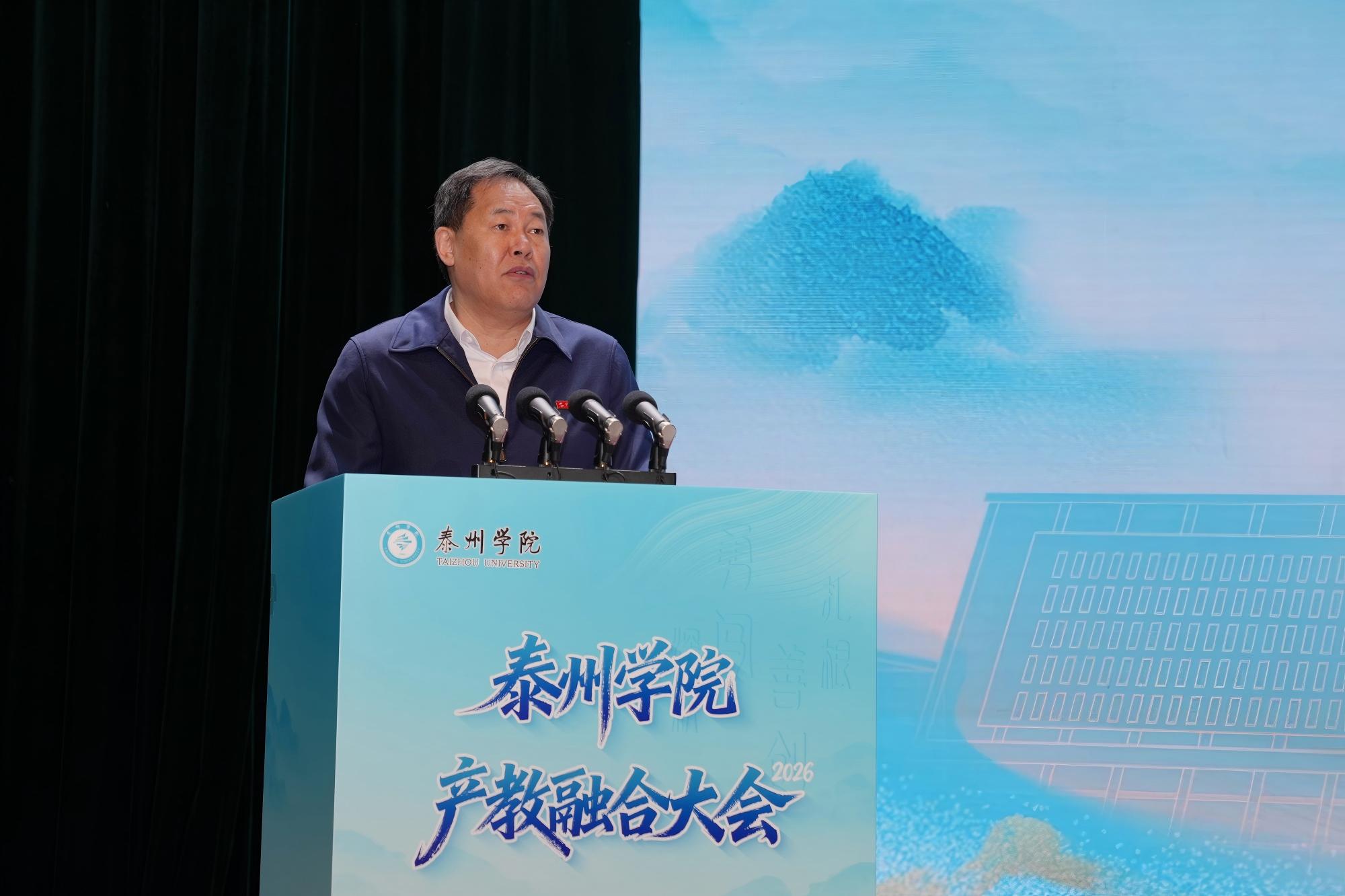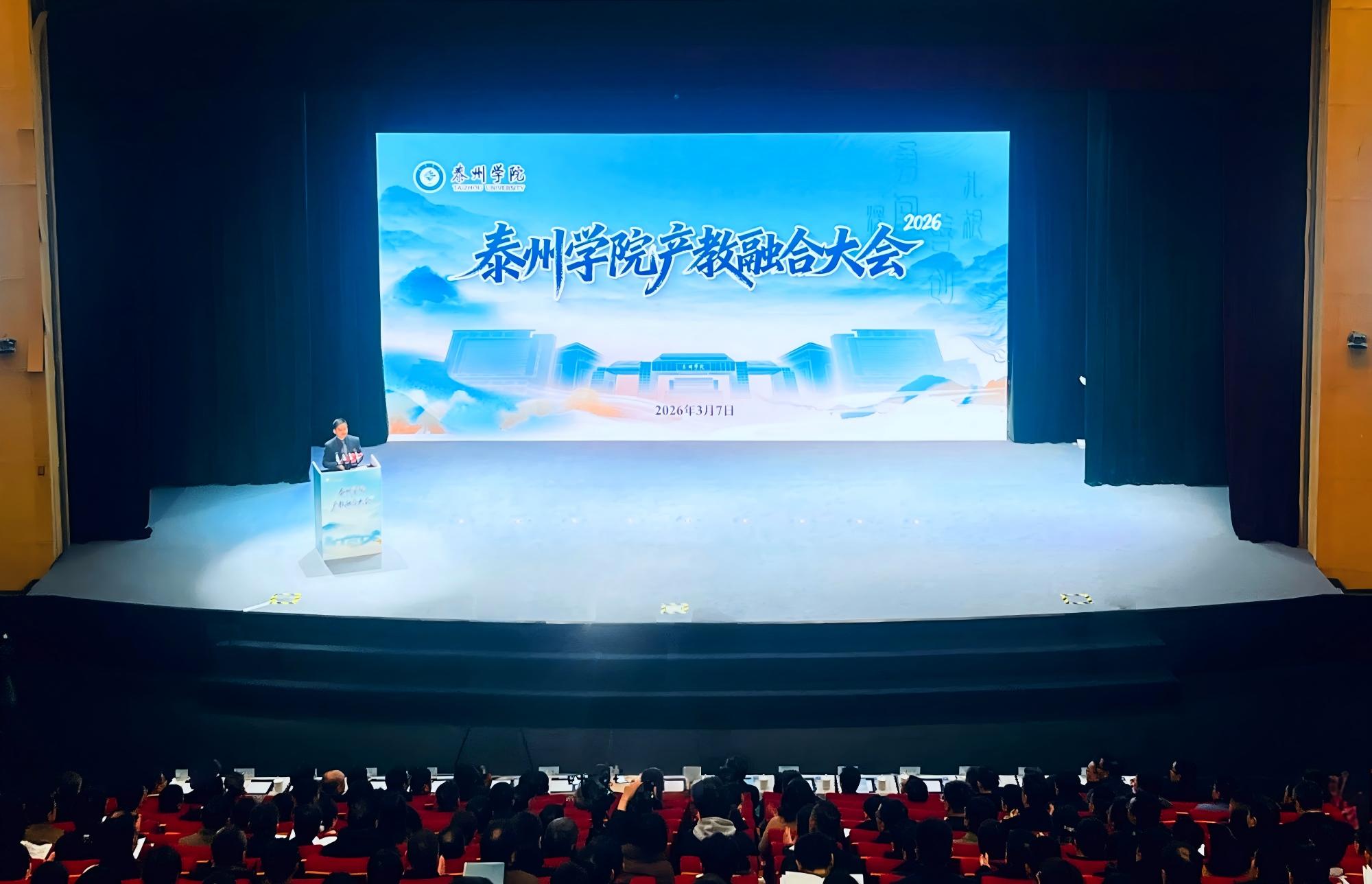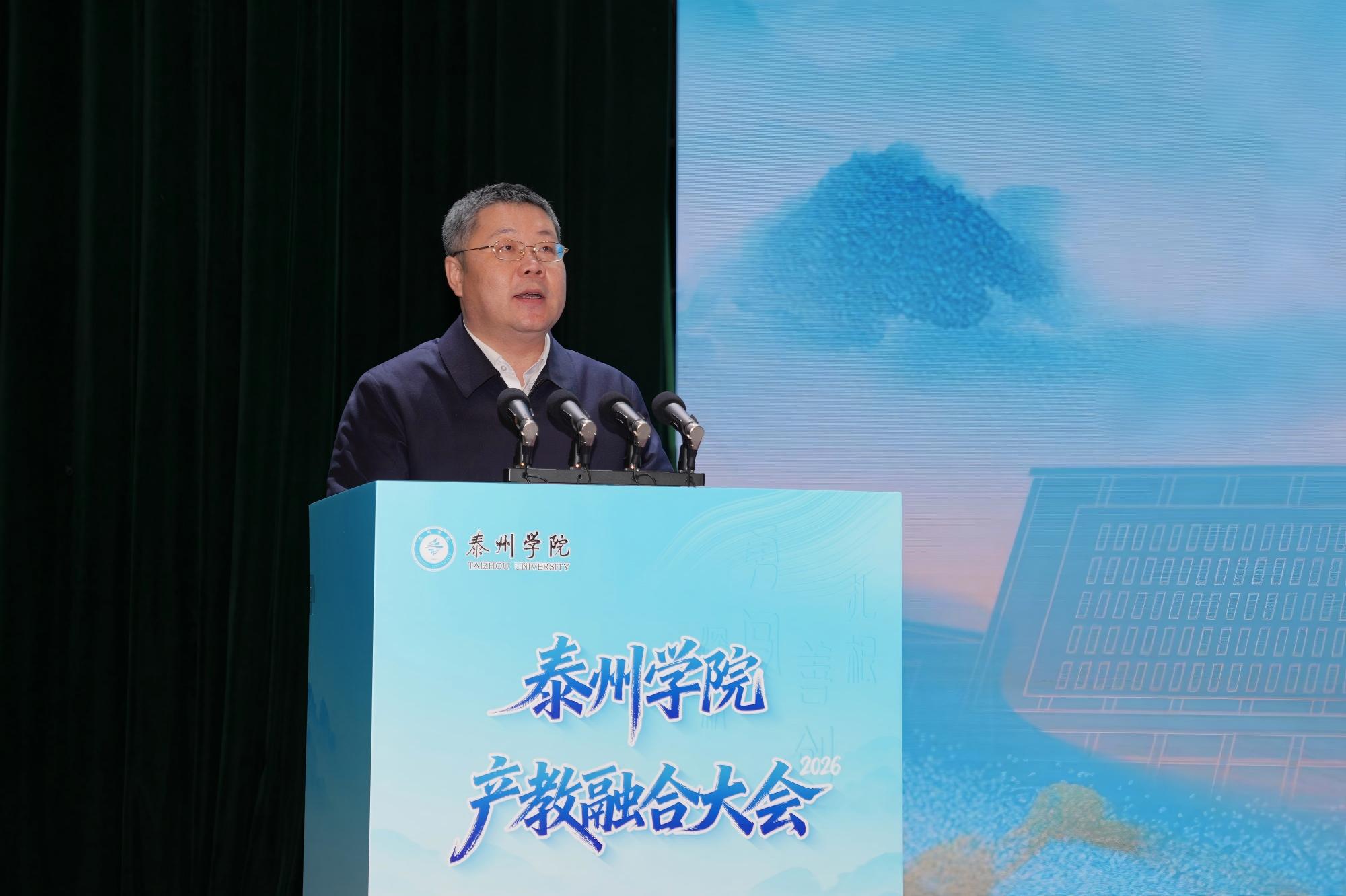 开幕式上,校党委书记徐向明致辞,全面回顾学校产教融合、校地校企合作成效。他表示,产教融合大会是我校2026年新春第一会,学校将以此次大会为契机,持续深化“三融三促”校城共兴计划,聚焦产业需求,完善协同机制,拓展合作领域,培养更多高素质应用型人才,为泰州发展提供坚实人才支撑和智力保障。大会播放的专题片,展现了学校发展成果与未来规划。